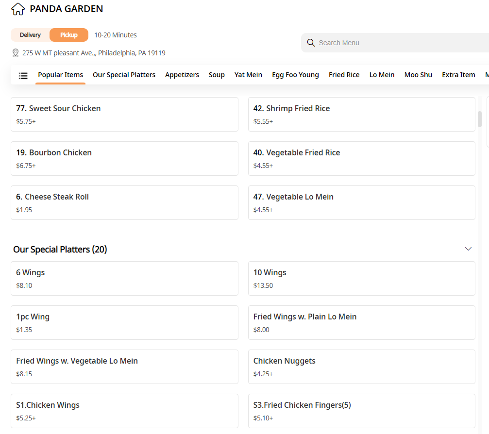 Whether you’re craving comfort food, vegetarian meals, or a place to enjoy solo dining with accessible seating, Panda Garden in Philadelphia is the spot you need to check out. With its extensive menu and focus on quality service, it’s a reliable choice for those seeking great food in a cozy, welcoming environment.